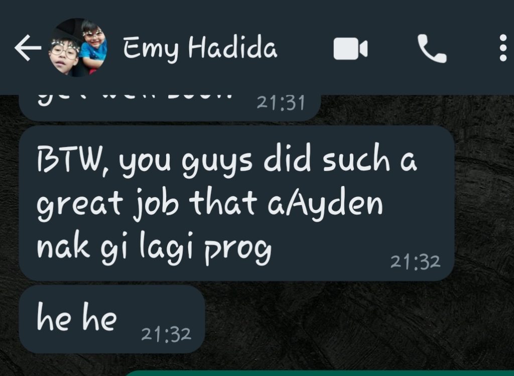 And at the end of the session, a paper jet-plane competition is held. Specially designed, this single piece of paper turned into a dynamic session that is enjoyed by both our children and adult participants.