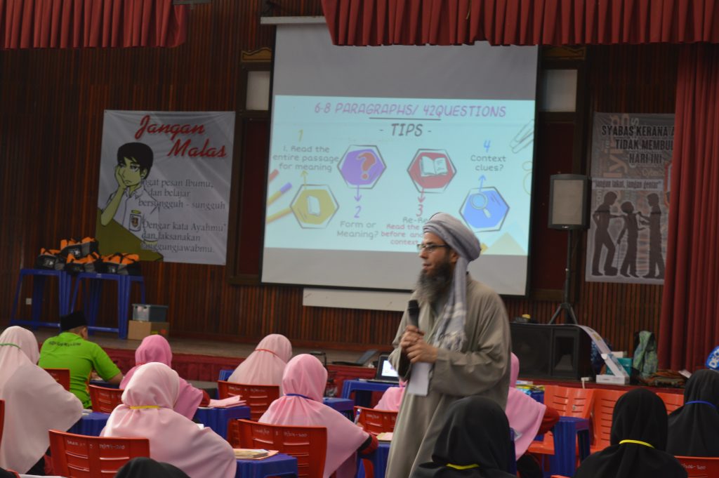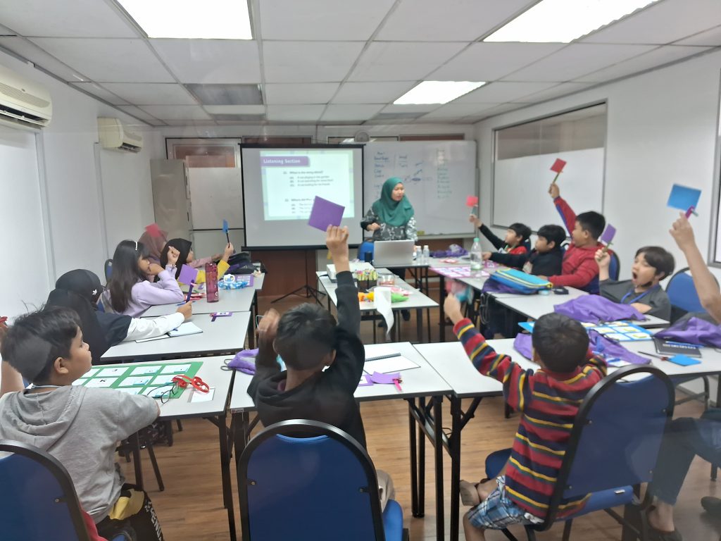 Participants are required to work in groups to solve English related exercises. Numerous activity stations designed with specific learning outcomes provides the participants with a new way of learning English that is fun, energetic and engaging.