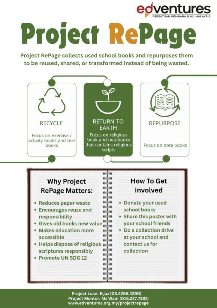 Upon conducting his research on the topic, and through his own experience of decluttering his room, he found that there are many religious books (notebooks, activity books and text books) that needs to be properly disposed, instead of just sending them to the recycling bin.